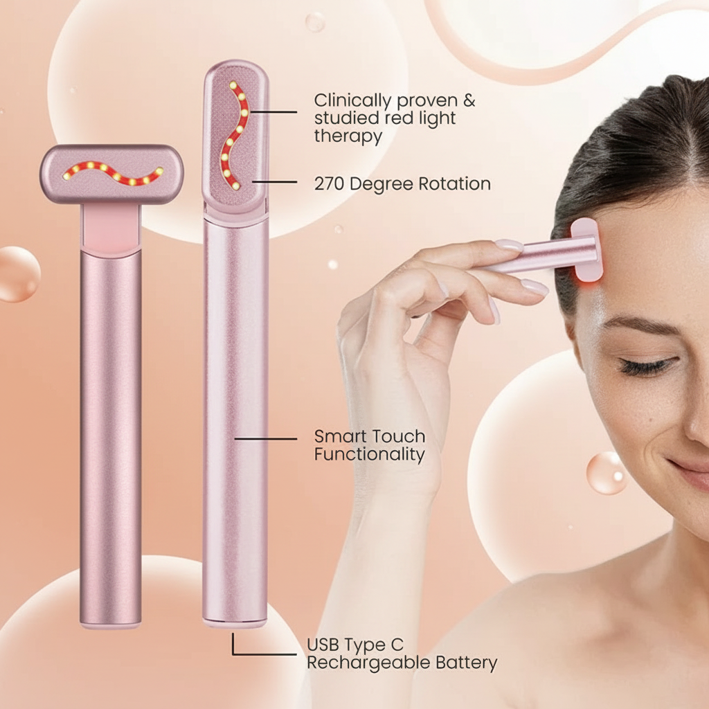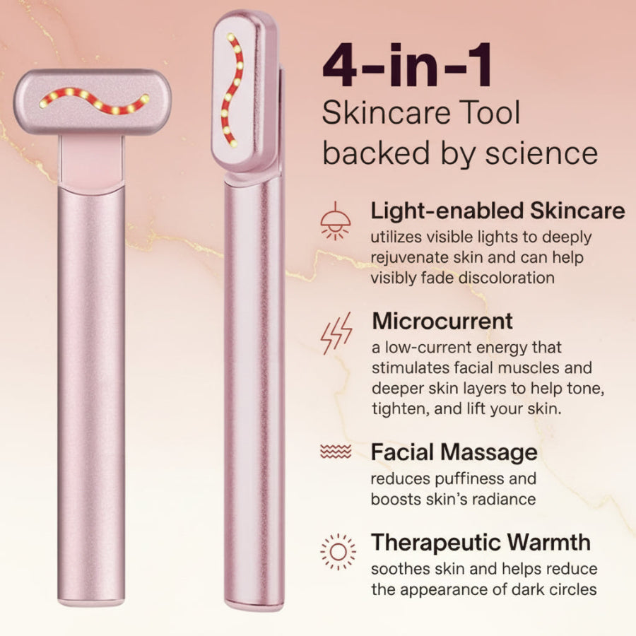 Offrez à votre peau une cure de jeunesse avec cette baguette de thérapie LED 4-en-1 de haut de gamme.